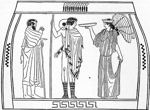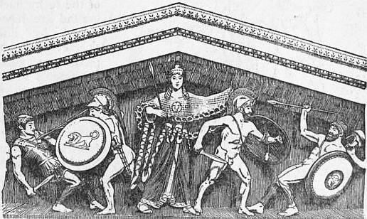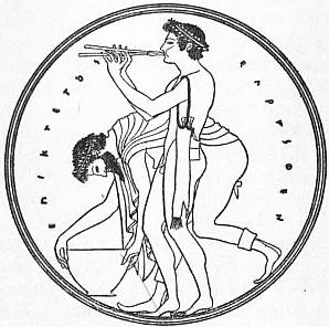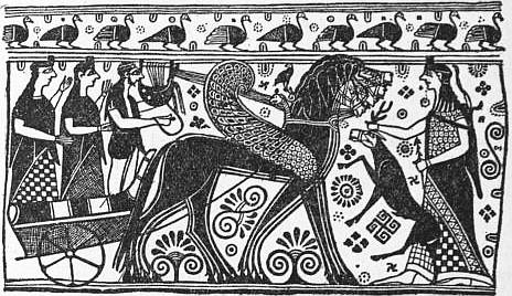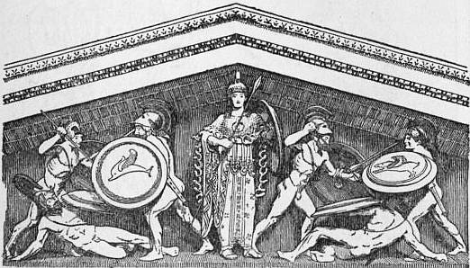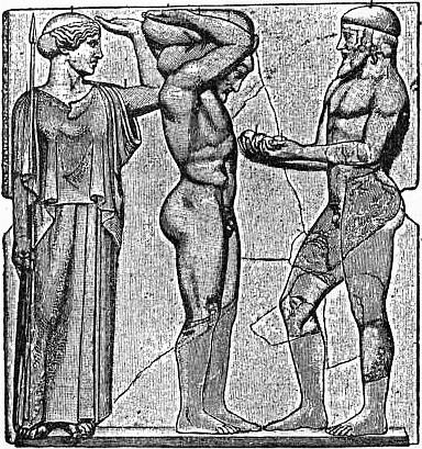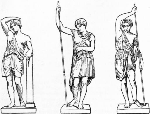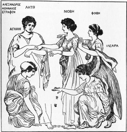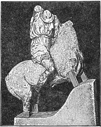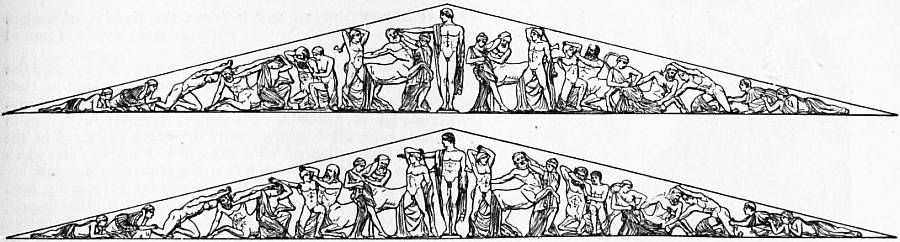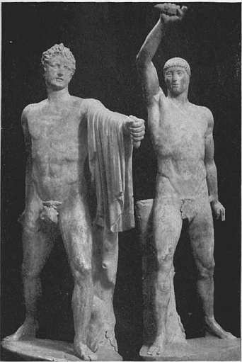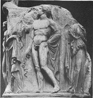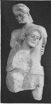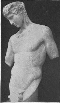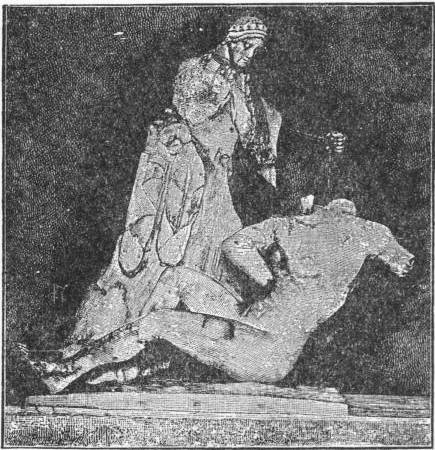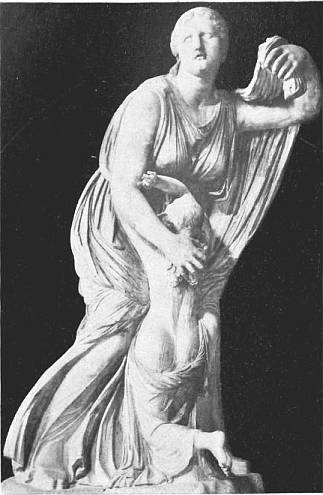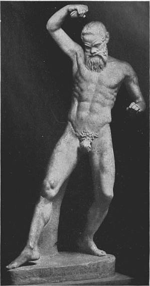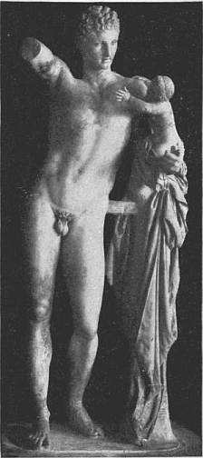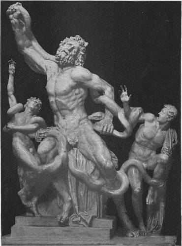 Since the Renaissance Rome has continually produced a crop of works of Greek art of all periods, partly originals brought from Greece by conquering generals, partly copies, such as the group at Rome formerly known as Paetus and Arria, and the overthrown giants and barbarians which came from the elaborate trophy set up by Attalus at Athens, of which copies exist in many museums. A noted work of kindred school is the group of Laocoon and his sons (Plate I. fig. 52), signed by Rhodian sculptors of the 1st century B.C., which has been perhaps more discussed than any work of the Greek chisel, and served as a peg 492 for the aesthetic theories of Lessing and Goethe. In our days the histrionic and strained character of the group is regarded as greatly diminishing its interest, in spite of the astounding skill and knowledge of the human body shown by the artists. To the same school belong the late representations of Marsyas being flayed by the victorious Apollo (Plate II. fig. 54), a somewhat repulsive subject, chosen by the artists of this age as a means for displaying their accurate knowledge of anatomy.