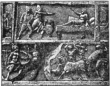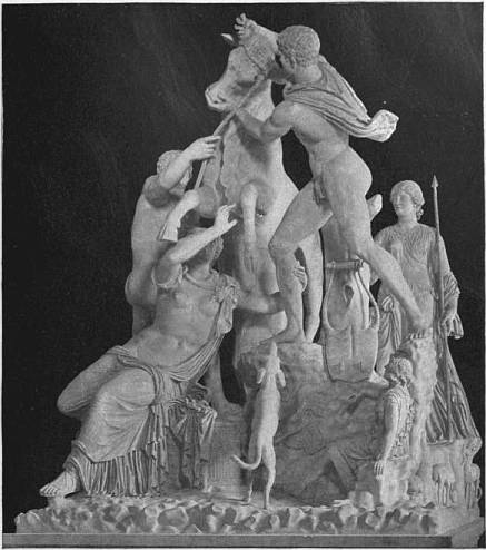 On what a scale some of the artists of Asia Minor would work is shown us by the enormous group, by Apollonius and Tauriscus of Tralles, which is called the Farnese Bull (Plate I. fig. 51), and which represents how Dirce was tied to a wild bull by her stepsons Zethus and Amphion.