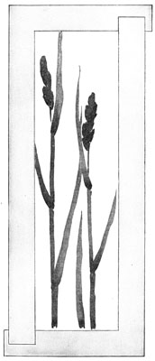 Draw on a sheet of 9 × 12 paper, an oblong seven inches high and three, four, or five inches wide. Around the oblong, which is to be cut out, leave a margin of at least an inch. Slip this large finder over the autumn sketch you made in the lesson on page 2, until you have found the part you like best. Cut this part out, and mount it on a large sheet of fresh paper, leaving a pleasing margin. The class sketches will make a fine exhibition.