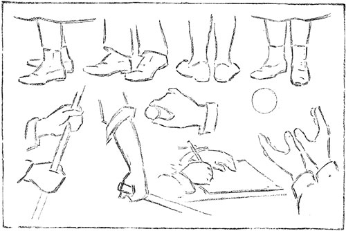 Brush Studies in Color from Pose; The Same Pose in Different Positions; Different Steps in Pose Drawing; Proportion and Action Shown in Leading Lines or "Skeleton" Figures; Hands and Feet; Dog and Pigeon in Leading Lines, in Outline and in Values; Study of a Masterpiece; Home Exercises.