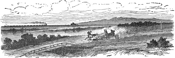 A long journey first in a comfortless train, through a country as level and lonesome as mid-ocean itself. Hot! it was indeed hot, and they were glad when the sun went down; for the carriages in which they rode were over-upholstered, and the paint stood up in soft boiling blisters on the wood-work.