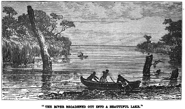 “For months we never came across the trail of a living soul, so that we were not afraid to picket our horses, leaving them plenty to eat and drink, and go off pleasuring for days at a time in our birch canoes, after the deer and wild-fowl by the river, or the swans by night. We knew, or we could generally guess, where their haunts were. Erecting a bit of canvas in the stern sheets, by way of cover, we would light a bundle of hay, and throw it overboard, then drop slowly down stream before it. If they were anywhere about, they were sure to be out soon; and as they came sailing towards us, wondering what was up, one or two of them was sure to pay for his curiosity with the forfeiture of his life.”
