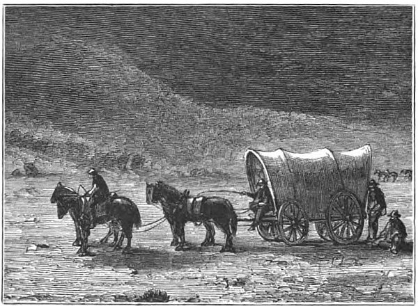 “Well, gentlemen, after this I was just as anxious to get away from England as Jack was, so we made our preparations; and in a month’s time we had crossed the wide Atlantic, and journeyed as near to the Rocky Mountains as cars would take us. I don’t think we had either of us any very definite notion of what we should do, or what adventures we should meet with. We were not unprepared, however, for anything. We had not gone abroad with our fingers in our mouths, so to speak; but we had read books on travel, and taken the best advice on everything. We had good horses, good waggons, good guns and compasses, and a fair supply of the necessaries of life, to say nothing of a trusty guide. So we just set a stout heart to a stiff brae (hill), and began the march. ‘To the west’ was our watchword; and there was in all our wanderings, ever in our hearts, the reflection of a sweet dream, which we firmly believed would one day become a reality, namely, that we would fall in with some land of gold, make riches in time, and then return to our own country.