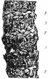 Fig. 1.—Stem of Cycas. F, foliage-leaf bases; S, scale-leaf bases. |