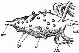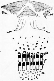 Fig. 7.—Zamia. Part of Ovule in longitudinal section. (After Webber.) | |