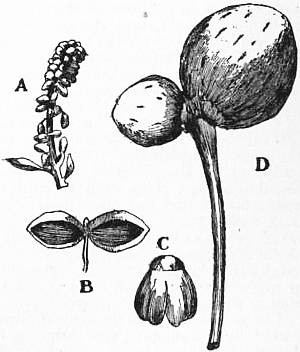 Fig. 12.—Ginkgo biloba. A, Male flower; B, C, single stamens; D, female flower. |
