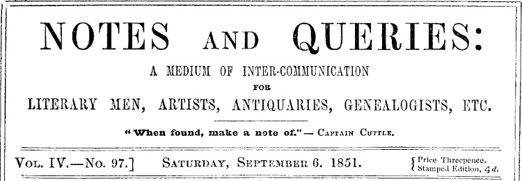 | Notes and Queries Vol. IV. |