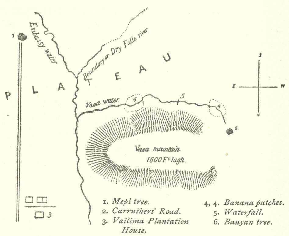 Now I was very much gratified at this compliment, although (to one used to natives) it seemed rather a hollow one. It meant only that I should have to lay out a good deal of money on tools and food and to give wages under the guise of presents to some workmen who were most of them old and in ill-health. Conceive how much I was surprised and touched when I heard the whole scheme explained to me. They were to return to their provinces, and collect their families; some of the young men were to live in Apia with a boat, and ply up and down the coast to A’ana and A’tua (our own Tuamasaga being quite drained of resources) in order to supply the working squad with food. Tools they did ask for, but it was especially mentioned that I was to make no presents. In short, the whole of this little ‘presentation’ to me had been planned with a good deal more consideration than goes usually with a native campaign.