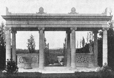 Entrance[Pg xi] Porch and Gate to the Rose Garden at Yaddo, Saratoga, New York. Country-seat of Spencer Trask, Esq. Photographed by Gustave Lorey 82