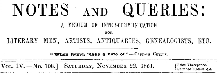 Title: Notes and Queries, Vol. IV, Number 108, November 22, 1851