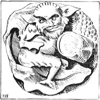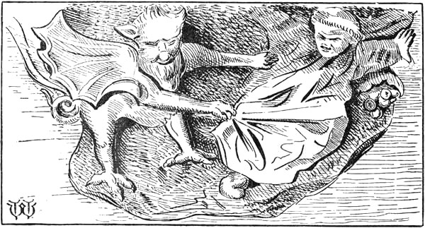 The memorial erections put into so many churches after the middle of the sixteenth century are to be placed in the same category as the less often ludicrous effigies of earlier times, and may be dismissed as “ugly monumental vanities, miscalled sculpture.” The grotesqueness of some of these sepulchral excrescences may in future centuries be still more apparent, though to many even time cannot supply interest. Not all are like the imposing monument to a doctor in Southwark Cathedral, on which, by the way, the epitaph is mainly devoted to laudation of his pills. Yet, though the grotesque is not entirely wanting in even these monuments, it is chiefly through errors of taste. The worst of them are more pathetic than anything else. The grotesque proper implies a proportion of levity, whereas the earnestness evinced by these effigies are more in keeping with the solemnity of the church’s purpose than the infinitely[Pg vii] more artistic and unobtrusive ornament of the fabric. The other class of grotesque is the modern imitation of mediæval carving, with original design. Luckily, it is somewhat rare to find the spirit of the old sculptors animating a modern chisel. One of the best series of modern antiques of this kind is a set of gargoyles at St. Nicholas’s, Abingdon, executed about 1881, of which I think it worth while to append a warning sample.