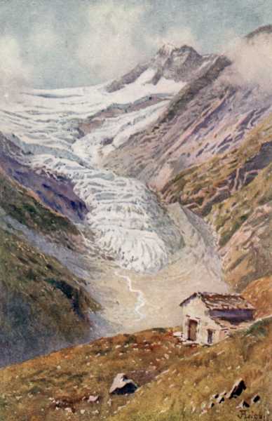 With ski the exploration of the Alps in all kinds of weather has become possible. A recent Journal de Genève gave the account of an extraordinary adventure of two Swiss ski-runners.172 On Easter Sunday, 1913, these two set out with a companion from Saas Fee for the Britannia Hut. This hut was reached at 8 a.m., and the three ski-runners went on to the Allalin Pass, but were compelled by mist to return to the hut, which they reached about 5 p.m. On the Sunday evening three Genevese climbers came to the hut, and one of the party of three ski-runners went home, leaving two. These two intended to go to Zermatt over the Adler Pass, but the weather was so bad that it was Saturday before they could start. They were seen to reach the Allalin Pass, and no more was seen or heard of them for a very long time. But it seems that the ski-ers went down to the Findelen Glacier, up to the Stockjoch, and down via the Monte Rosa Glacier to the Gorner Glacier; thence up again to the Bétemps Hut, where they spent the night. The following day, Sunday, in uncertain weather, they went down on to the glacier again, meaning to go to Zermatt. One of the two, named Dehns, was going on ahead. The wind had blown away all trace of the track made by them the previous day, and the man who had remained behind noticed that Dehns was going too much to the left, and called out173 to him that he was not taking the right way, but too late. He had not gone more than about sixty yards on to the glacier before he disappeared into a crevasse, hidden beneath a quantity of fresh snow.