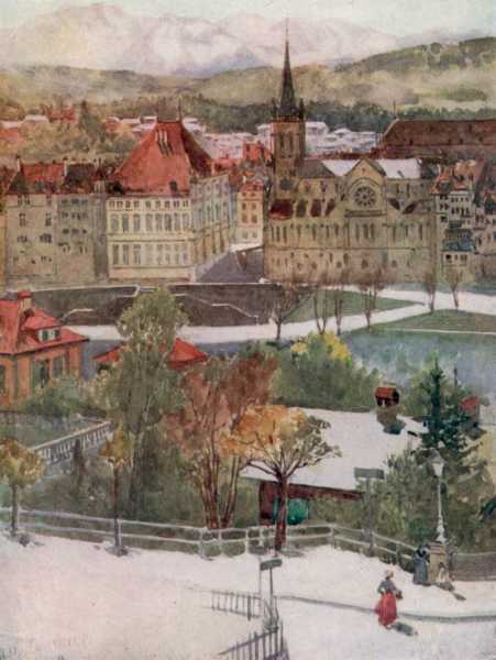 In a previous chapter a very slight sketch of the history of Switzerland was given to the time of Charlemagne. In the confusion which followed his death Switzerland was divided up, the Treaty of Verdun (843) assigning West Switzerland and East Switzerland to different kingdoms. West Switzerland was part of the Burgundian Kingdom, and after Charlemagne their national pride centred chiefly in Bertha, "the spinning Queen," who fortified the country against the Saracens and the Hungarians. By the eleventh century Switzerland was united again, but when the dispute between Pope Gregory VII. and the Emperor Henry IV. (it34 was the time when the Popes claimed, and to an extent enforced, a temporal and spiritual overlordship over Europe) plunged the whole continent into a series of wars, Switzerland suffered with the rest of Europe. The twelfth century saw an important development for the Swiss national character when Berne and other "Free Cities" were founded by Bertold V. of the House of Zaeringer. These "Free Cities" acted as a counterpoise to the growing power of the Swiss feudal nobles of the country districts, and helped much to shape the country towards its future of a Federal Republic. This was the time of the Crusades and, needless to say, the Swiss did not miss that opportunity for martial service.