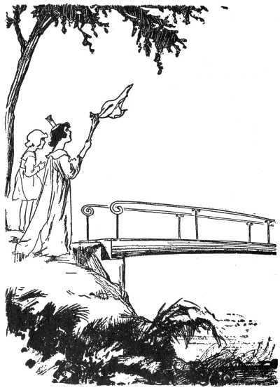 "Not just yet," returned Glinda, a happy smile upon her lovely face, for she was overjoyed at their success. "First let us extend the bridge to the mainland, where our friends from the Emerald City are waiting."