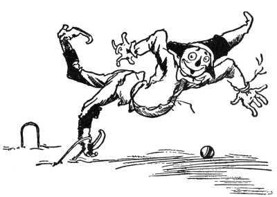 The Wizard now discovered that the rope was long enough to reach from the top of the Dome to the ground when doubled, so he tied a chair to one end of the rope and called to Glinda to sit in the chair while he and some of the Skeezers lowered her to the pavement. In this way the Sorceress reached the ground quite comfortably and the three Adepts and Ervic soon followed her.