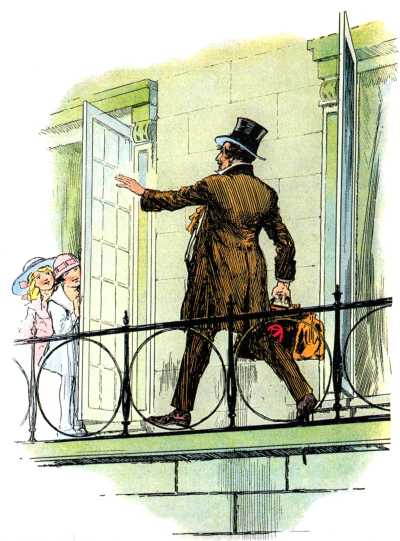 So the Wizard let down the rope and climbing through the opening lowered himself down, hand over hand, clinging to the rope with his legs and feet. Below in the streets of the village were gathered all the Skeezers, men, women and children, and you may be sure that Ozma and Dorothy, with Lady Aurex, were filled with joy that their friends were at last coming to their rescue.