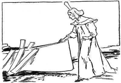 "Very well, your Majesty," said the Sorceress, "I will try to get some information to guide you. Please excuse me for a time, while I retire to my Room of Magic and Sorcery."