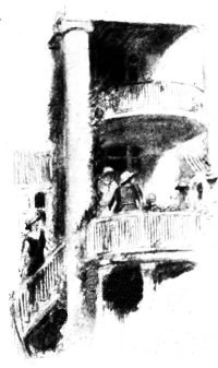 What appealed to me more in my brief study of American social life outside New York was another popular institution known as the roadside inn. In some way it is a conscious endeavor to get back to the simplicity and good cheer of old-fashioned times, when the grandfathers and grandmothers of the present generation used to get down from their coaches when the horses were changed, or the snowdrifts were deep, and go gladly to the warmth of a log fire, in a wayside hostelry, while orders were given for a dinner of roast duck, and a bowl of punch was brewed by the ruddy-faced innkeeper. It is a tradition which is kept fresh in the imagination of modern Americans by the genius of Charles Dickens, Washington Irving, and a host of writers and painters who reproduce the atmosphere of English life in the days of coaching, highwaymen, romance, and roast beef. The spirit of Charles Dickens is carefully suggested to all wayfarers in one roadside inn I visited, about an hour away from[Pg 80] New York, and called "The Pickwick Inn." It is built in the style of Tudor England, with wooden beams showing through its brickwork and windows divided into little leaded panes, and paneled rooms furnished with wooden settles and gate-leg tables. Colored prints depicting scenes in the immortal history of Mr. Pickwick brighten the walls within. Outside there swings a sign-board such as one sees still outside country inns standing on the edge of village greens in England. I found it a pleasant place, where one could talk better with a friend than in a gilded restaurant of New York, with a jazz band smiting one's eardrums; and the company there was interesting. In spite of the departure of coaching days, which gave life and bustle to the old inns of the past, the motor-car brings travelers and a touch of romance to these modern substitutes. There were several cars outside the "Pickwick," and I guessed by the look of the party within that they had come from New York for a country outing, a simple meal, and private conversation. "Better a dinner of herbs where love is—" Under the portrait of Mr. Pickwick in a quiet corner of one of the old-fashioned rooms a young man[Pg 81] and woman sat with their elbows on the table and their chins propped in the palms of their hands, and their faces not so far away that they had any need to shout to each other the confidences which made both pairs of eyes remarkably bright. The young man was one of those square-shouldered, clean-shaven, gray-eyed fellows whom I came to know as a type on the roads to Amiens and Albert. The girl had put her dust-cloak over the back of her chair, but still wore a veil tied round her hat and under her chin—a little pointed chin dug firmly into her palm, and modeled with the same delicacy of line as the lips about which a little smile wavered, and as the nose which kept its distance, with perfect discretion, from that of the young man opposite, so that the waiter might have slipped a menu-card between them. She had a string of pearls round her neck which would certainly have been the first prize of any highwayman holding up her great-grandmamma's coach, and judging from other little signs of luxury as it is revealed in Fifth Avenue, I felt certain that the young lady did not live far from the heart of New York and had command of its treasure-houses.... Two other groups in the room,[Pg 82] sitting at separate tables, belonged obviously to one party. They were young people, for the most part, with one elderly lady whose white hair and shrewd, smiling eyes made all things right with youthful adventure, and with one old fogy, bland of countenance and expansive in the waistcoat line, who seemed to regard it as a privilege to pay for the large appetites of the younger company. Anyhow he paid for at least eight portions of chicken okra, followed by eight plates of roast turkey and baked potatoes, and, not counting sundries, nine serves of deep-dish pie. The ninth, unequal, share went, in spite of warnings, protests, and ridicule from free-spoken companions, to a plump girl with a pigtail, obviously home from college for a spell, who said: "I guess I sha'n't die from overeating, though it's the way I'd choose if I had to quit. An appetite is like love. Its dangers are exaggerated, and seldom fatal." This speech, delivered in all solemnity, aroused a tumult of mirth from several young women of grown-up appearance—at least they had advanced beyond the pigtail stage—and under cover of this one of them deliberately "made up" her face till it bloomed like a rose in June. In another[Pg 83] corner of the Pickwick Inn sat a lonely man whose appearance interested me a good deal. He was a man of middle age, with black hair turning white, and very dark, melancholy eyes in a pale, ascetic face. I have seen his type many times in the Café de l'Odéon on the "Latin" side of Paris, and I was surprised to find it in a roadside inn of the United States. A friend of mine, watching the direction of my gaze, said, "Yes, that is a remarkable man—one of the best-known architects in America, and, among other things, the designer of the Victory decorations of New York." He came over to our table and I had a talk with him—a strange conversation, in which this man of art spoke mostly of war, from unusual angles of thought. His idea seemed to me that peace is only a preparation for war, and that war is not the abnormal thing which most people think, but the normal, because it is the necessary conflict by which human character and destiny are shaped. He seemed to think that the psychology of the world had become twisted and weakened by too much peace so that the sight of armless or legless men was horrifying, whereas people should be accustomed to such sights and take them for[Pg 84] granted, because that, with all pain and suffering, is the price of life. I disagreed with him profoundly, believing that war in ninety-nine cases out of a hundred is unnecessary and due to the s