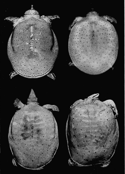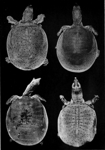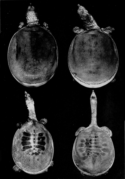 My accumulation of data on soft-shelled turtles was begun in [434] the early nineteen-fifties. Although American softshells have been discussed in a revisionary manner by Agassiz (1857), Siebenrock (1924), Stejneger (1944) and Neill (1951), the relationships of all the component populations have not hitherto been appreciated. The present account attempts to combine in one publication what is known concerning the taxonomy, geographic distribution, life history, and relationships of the Recent American species and subspecies of the genus Trionyx.