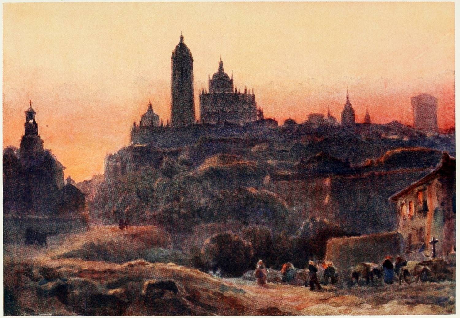 In the mountain fastnesses of Asturias the churches of Santa Maria de Naranco and San Miguel de Lino, dating from the ninth century and contemporary with San Pablo and Santa Cristina, in Barcelona, are the earliest Christian buildings in Spain. As the Moor was pushed further south, a new style followed his retreating steps; and the Romanesque, introduced from over the Pyrenees, became the adopted form of architecture in the more or less settled parts of the country. Creeping south through Leon, where San Isidoro is well worth mention, we find the finest examples of the period in the eleventh and twelfth centuries, at Segovia, Avila, and the grand Catedral Vieja of Salamanca.