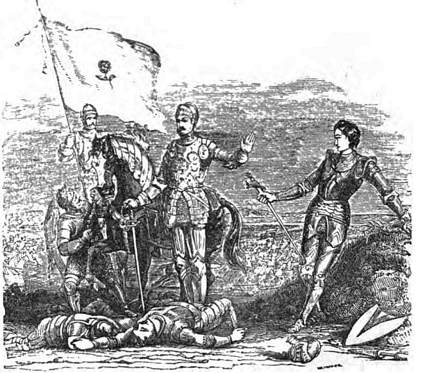 They were not in the least particular as to who should fight one with the other. Julius Caesar and the Black Prince had a desperate combat, and so had Mark Antony and King Arthur, the two British heroes coming off victorious, and leaving their opponents dead on the field. The most terrific combat was that between the Duke of Wellington and Napoleon Bonaparte. For folly five minutes they walked about abusing each other in the most unmeasured versification, I was going to say language, flourishing their swords, and stamping their feet. They put me much in mind of two turkey-cocks preparing for a fight. It might be remarked also that in this, as in the previous instances, the modesty of the heroes did not stand in their way, when singing their own praises: