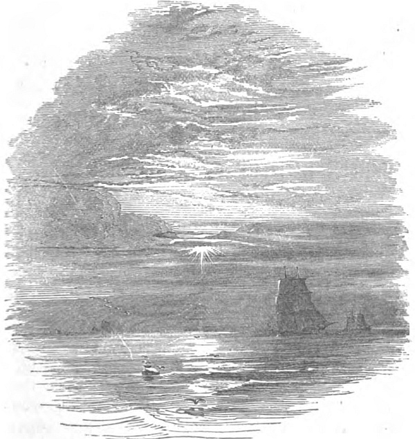 “Not a man on board turned in again that night, you may be sure, but all the watch who should have been below shrunk together in knots uttering their forebodings to each other, and earnestly wishing for the return of day. The longest night must have an end, and so had this, and, as the morning broke, the wind settled down into a moderate gale, which sent as forward on our course at the rate of twelve knots an hour.