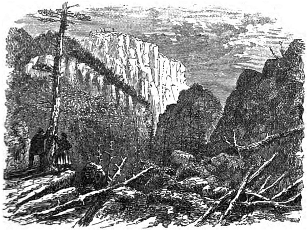 Long before daybreak we boys were up, called by Sam Barnby, and, having breakfasted, and by his advice, filled our pockets with bread and ham and tongue and brawn, set off while the first streaks of dawn were still in the sky, to commence our search through the forest. The sky was cloudless, the stars shining brightly at first, but one by one they disappeared as the light streaming through the leafless trees on the one hand, seemed to be rolling back the gloom of night on the other. The air was pure, but keen as razor-blades, as Sam observed, and would have saved us shaving, if we had had beards to shave. The crisply frozen grass crackled under our feet as we trod rapidly over it, with difficulty restraining our inclination to sing and shout out, so high were our spirits raised by the exhilarating atmosphere.