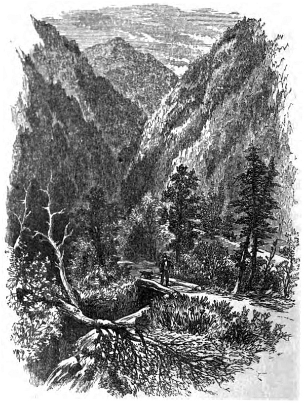 It was dusk when we got into the carriage, and as our way lay for some distance through the thickest part of the forest by a cross-road which few people but Sam Barnby would have attempted to take at that late hour, we could often scarcely distinguish the track under the thick branches of the leafless trees which, stretching across it, formed a trellis-work over our heads, while the thick hollies and other evergreens formed an impenetrable wall on either side. Now and then, when the forest opened out and the forms of the trees were rather more clearly defined, they often assumed shapes so fantastic and strange, that I could scarcely prevent a sort of awe creeping over me, and half expected that the monsters I fancied I saw would move from their places and grab up Jack, Sam Barnby, the carriage, and me, and bolt off with us into some recess of the forest. Jack was talking away to Sam. I had been up bolstering the night before, and had not slept a wink. Suddenly the carriage stopped, and I heard Sam and Jack utter an exclamation. I echoed it, and pretty loudly too; for I thought that one of the monsters I had been dreaming about had really got hold of us.