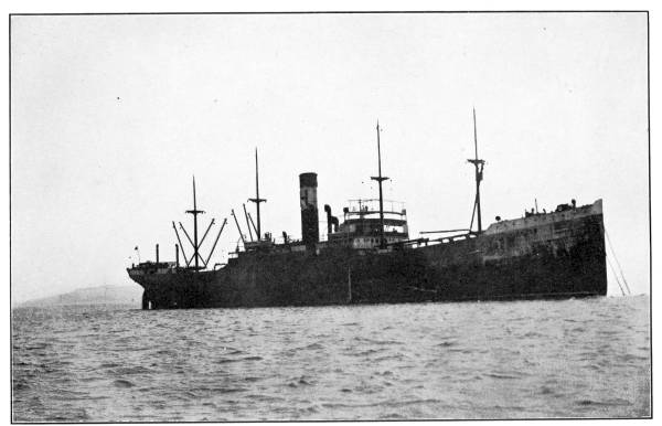 The Harpalyce was the first and largest of the ships. She sailed on January 7th, reaching Rotterdam the 23d. On April 10th, while on another voyage, she was torpedoed in the North Sea. She carried a crew of fifty-three men, twenty-six of whom were drowned, among them the captain, whom we knew personally.