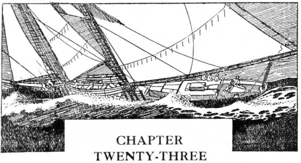 When he thought of this, and of the visions, dreams and ambitions in which Ruth played so prominent a part, he endured mental agony which demanded relief. As he[Pg 389] had neither taste nor inclination for drink or brutality, he found a counter distraction in driving the vessel. And under such pressure, the Amy Anderson arrived off San Juan nine days after leaving Eastville, with her foretopmast gone and all her light sails split through sail-dragging in one or two hard breezes.