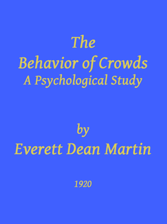 Since the publication of Le Bons book, The Crowd, little has been added to our knowledge of the mechanisms of crowd-behavior. As a practical problem, the habit of crowd-making is daily becoming a more serious menace to civilization. Events are making it more and more clear that, pressing as are certain economic questions, the forces which threaten society are really psychological.