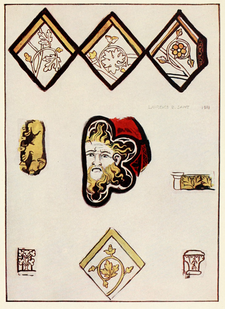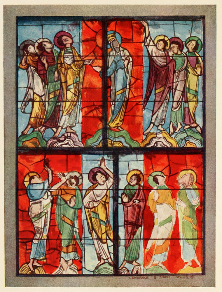[3] By some writers it has been claimed that the whole idea of stained-glass work was derived from cloisonné enamel; but from the fact that the glazing of windows in glass and metal had been known long before, I think the course of events I have suggested above to have been more probable.