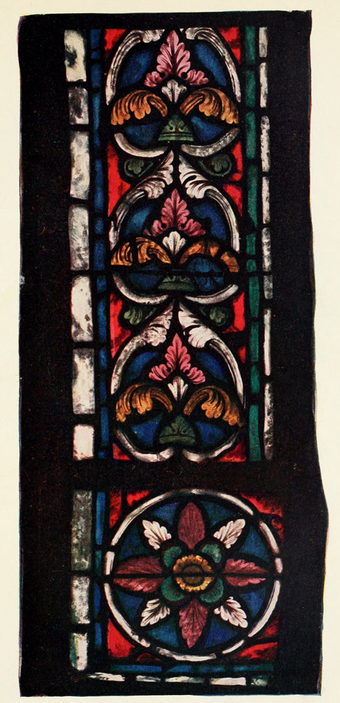 There was both advantage and disadvantage in this. The drawing of the French is generally a little better than our own, and there is more variety and enterprise in their colour schemes than in our later Perpendicular work. On the other hand, it seems to me that almost from the beginning they were hampered, if ever so little at 244 first, by the desire to apply to glasswork the standards of a different medium.