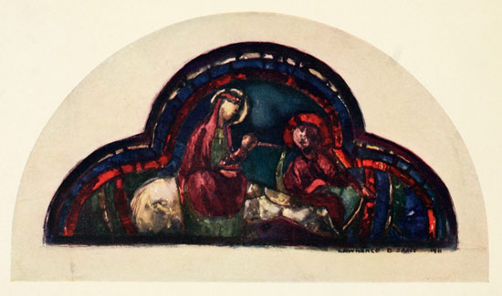 The difficulty had not arisen before. The illumination or wall painting of the thirteenth and early fourteenth century in England and the north of France could be translated into glass with little change, but, in the fifteenth century, the painters of illuminations and panel pictures had learnt all sorts of things about light and shade and landscape and flesh painting that did not come at all easily to the worker in glass and lead, and were of no help to him in his task of beautifying windows. It was inevitable that he should make some attempt to follow in the cry, and the extent to which he succeeded is amazing; but from henceforth, even where he most succeeds, it is to some extent by a tour de force, by a compromise between incompatibilities.