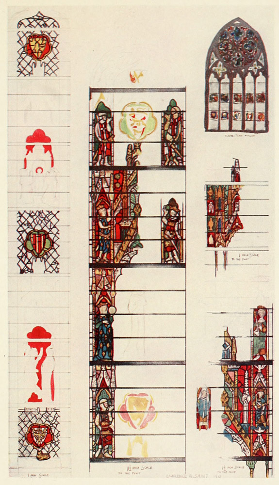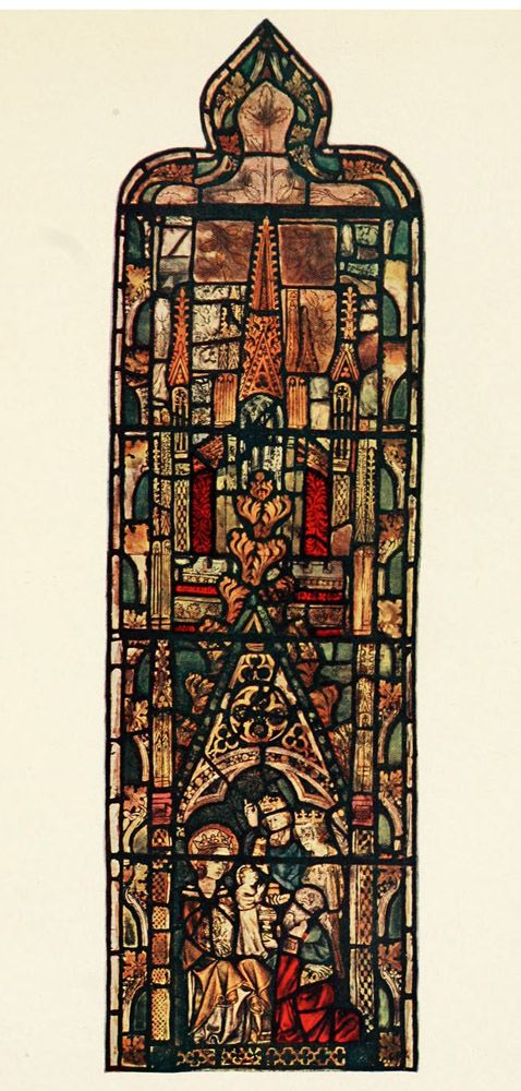As to the question of the English or Flemish 260 authorship of the windows, it is true that Flemish details crop up here and there both in architecture and the costumes; but this is not surprising, for the style, new then to England, was largely based on Flemish art, and on the other hand the English characteristics are in excess of the Flemish.
