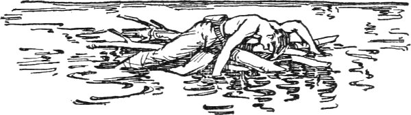 The end of another lariat was passed through under their arms, around the body, and tied in a "bow-line hitch" behind the back. The two luckless officers were by this time regaining consciousness, and began to curse and struggle, but to no avail. At first they feared they were to be hung, and begged for their lives like good fellows; but as they were swung off the edge of the bridge and found how they were lashed with ropes, they pleaded even more fervently, for it looked as if the boys meant to drown them like rats in a cage. All to no avail. The boys never answered a word, but went ahead with their work, in the most matter-of-fact way imaginable. The ropes, tied as they were, suspended the men by the arms in such a way that they hung fairly upright, and without any particular pain or suffering from them.