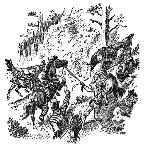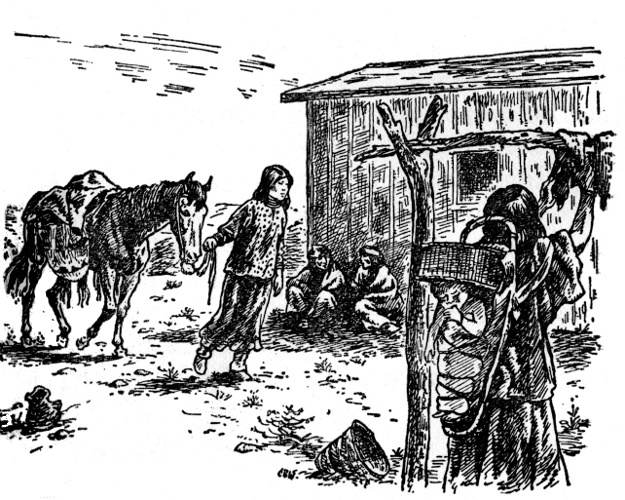 "All right," the scout said. "But don't leave no horses here!"