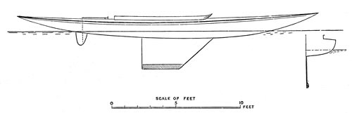 13: The 'Daisy' was exhibited at the Royal Aquarium in 1893, and sold to some gentleman in the Antipodes; so that her keel, instead of her stern, is now pointing at the Solent ½-raters.