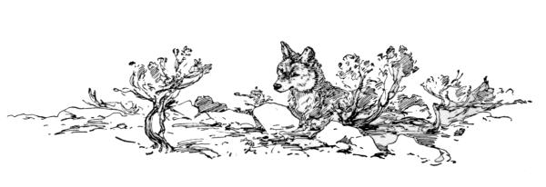 the coyote: is the prairie or desert wolf. He is larger than the red fox, but smaller than the gray, or timber, wolf.