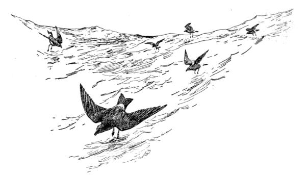 Mother Carey’s chickens are any of the small petrels. The little stormy petrels of poetry and story belong to the Old World and only wander occasionally over to our side of the Atlantic.