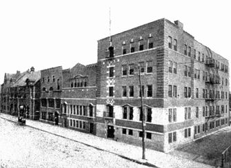 One of the new buildings that was early added to the original Hull-House was a gymnasium, which provided opportunities for swimming, basket-ball, and dancing.