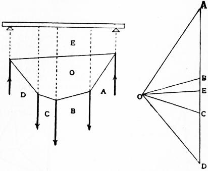 2 Since the relation discussed in § 7 was enunciated by Rankine, an enormous development has taken place in the subject of Graphic Statics, the first comprehensive textbook on the subject being Die Graphische Statik by K. Culmann, published at Zürich in 1866. Many of the graphical methods therein given have now passed into the textbooks usually studied by engineers. One of the most beautiful graphical constructions regularly used by engineers and known as “the method of reciprocal figures” is that for finding the loads supported by the several members of a braced structure, having given a system of external loads. The method was discovered by Clerk Maxwell, and the complete theory is discussed and exemplified in a paper “On Reciprocal Figures, Frames and Diagrams of Forces,” Trans. Roy. Soc. Ed., vol. xxvi. (1870). Professor M. W. Crofton read a paper on “Stress-Diagrams in Warren and Lattice Girders” at the meeting of the Mathematical Society (April 13, 1871), and Professor O. Henrici illustrated the subject by a simple and ingenious notation. The application of the method of reciprocal figures was facilitated by a system of notation published in Economics of Construction in relation to framed Structures, by Robert H. Bow (London, 1873). A notable work on the general subject is that of Luigi Cremona, translated from the Italian by Professor T. H. Beare (Oxford, 1890), and a discussion of the subject of reciprocal figures from the special point of view of the engineering student is given in Vectors and Rotors by Henrici and Turner (London, 1903). See also above under “Theoretical Mechanics,” Part 1. § 5.