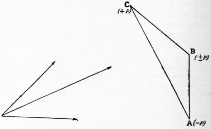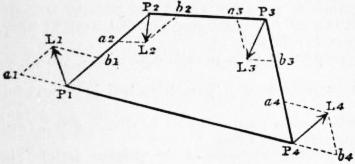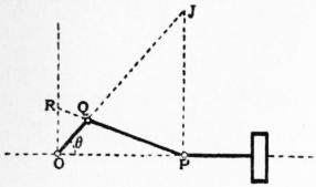 § 128.* The Connecting Rod Problem.—A particular problem of practical importance is the determination of the force producing the motion of the connecting rod of a steam-engine mechanism of the usual type. The methods of the two preceding sections may be used when the acceleration of two points in the rod are known. In this problem it is usually assumed that the crank pin K (fig. 136) moves with uniform velocity, so that if α is its angular velocity and r its radius, the acceleration is α2r in a direction along the crank arm from the crank pin to the centre of the shaft. Thus the acceleration of one point K is known completely. The acceleration of a second point, usually taken at the centre of the crosshead pin, can be found by the principles of § 82, but several special geometrical constructions have been devised for this purpose, notably the construction of Klein,4 discovered also independently by Kirsch.5 But probably the most convenient is the construction due to G. T. Bennett6 which is as follows: Let OK be the crank and KB the connecting rod. On the connecting rod take a point L such that KL × KB = KO2. Then, the crank standing at any angle with the line of stroke, draw LP at right angles to the connecting rod, PN at right angles to the line of stroke OB and NA at right angles to the connecting rod; then AO is the acceleration of the point B to the scale on which KO represents the acceleration of the point K. The proof of this construction is given in The Balancing of Engines.