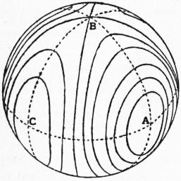 Mass on the Electrical Theory of Matter.—One of the most characteristic things about matter is the possession of mass. When we take the electrical theory of matter the idea of mass takes new and interesting forms. This point may be illustrated by the case of a single electrified particle; when this moves it produces in the region around it a magnetic field, the magnetic force being proportional to the velocity of the electrified particle.1 In a magnetic field, however, there is energy, and the amount of energy per unit volume at any place is proportional to the square of the magnetic force at that place. Thus there will be energy distributed through the space around the moving particle, and when the velocity of the particle is small compared with that of light we can easily show that the energy in the region around the charged particle is μe2/3a, when v is the velocity of the particle, e its charge, a its radius, and μ the magnetic permeability of the region round the particle. If m is the ordinary mass of the particle, the part of the kinetic energy due to the motion of this mass is 1⁄2 mv2, thus the total kinetic energy is 1⁄2 (m + 2⁄3μe2/a). Thus the electric charge on the particle makes it behave as if its mass were increased by 2⁄3μe2/a. Since this increase in mass is due to the energy in the region outside the charged particle, it is natural to look to that region for this additional mass. This region is traversed by the tubes of force which start from the electrified body and move with it, and a very simple calculation shows that we should get the increase in the mass which is due to the electrification if we suppose that these tubes of force as they move carry with them a certain amount of the ether, and that this ether had mass. The mass of ether thus carried along must be such that the amount of it in unit volume at any part of the field is such that if this were to move with the velocity of light its kinetic energy would be equal to the potential energy of the electric field in the unit volume under consideration. When a tube moves this mass of ether only participates in the motion at right angles to the tube, it is not set in motion by a movement of the tube along its length. We may compare the mass which a charged body acquires in virtue of its charge with the additional mass which a ball apparently acquires when it is placed in water; a ball placed in water behaves as if its mass were greater than its mass when moving in vacuo; we can easily understand why this should be the case, because when the ball in the water moves the water around it must move as well; so that when a force acting on the ball sets it in motion it has to move some of the water as well as the ball, and thus the ball behaves as if its mass were increased. Similarly in the case of the electrified particle, which when it moves carries with it its lines of force, which grip the ether and carry some of it along with them. When the electrified particle is moved a mass of ether has to be moved too, and thus the apparent mass of the particle is increased. The mass of the electrified particle is thus resident in every part of space reached by its lines of force; in this sense an electrified body may be said to extend to an infinite distance; the amount of the mass of the ether attached to the particle diminishes so rapidly as we recede from it that the contributions of regions remote from the particle 893 are quite insignificant, and in the case of a particle as small as a corpuscle not one millionth part of its mass will be farther away from it than the radius of an atom.
