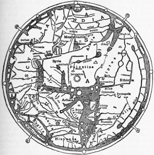 Anaximenes, a pupil of Anaximander, was the first to reject the view that the earth was a circular plane, but held it to be an oblong rectangle, buoyed up in the midst of the heavens by the compressed air upon which it rested. Circular maps, however, remained in the popular favour long after their erroneousness had been recognized by the learned.