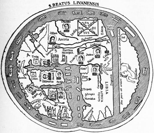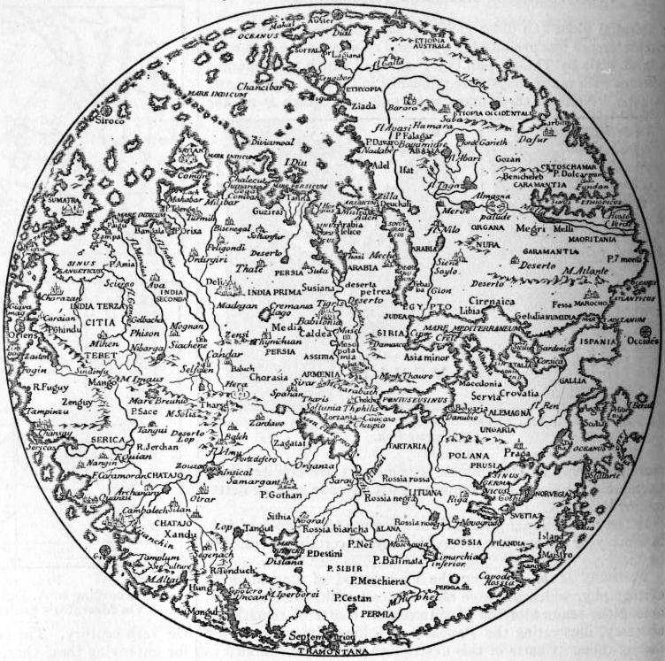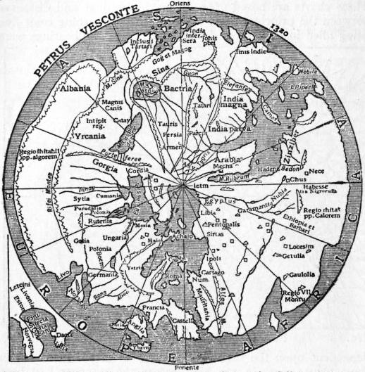 Dicaearcus of Messana in Sicily, a pupil of Aristotle (326-296 B.C.), is the author of a topographical account of Hellas, with maps, of which only fragments are preserved; he is credited with having estimated the size of the earth, and, as far as known he was the first to draw a parallel across a map.14 This parallel, or dividing line, called diaphragm (partition) by a commentator, extended due east from the Pillars of Hercules, through the Mediterranean, and along the Taurus and Imaus (Himalaya) to the eastern ocean. It divided the inhabited world, as then known, into a northern and a southern half. In compiling his map he was able to avail himself of the information obtained by the bematists (surveyors who determined distances by pacing) who accompanied Alexander the Great on his campaigns; of the results of the voyage of Nearchus from the Indus to the Euphrates, and of the “Periplus” of Scylax of Caryanda, which described the coast from between India and the head of the Arabian Gulf. On the other hand he unwisely rejected the results of the observations for latitude made by Pytheas in 326 B.C. at his native town, Massilia, and during a subsequent voyage to northern Europe. In the end the map of Dicaearcus resembled that of Democritus.