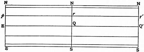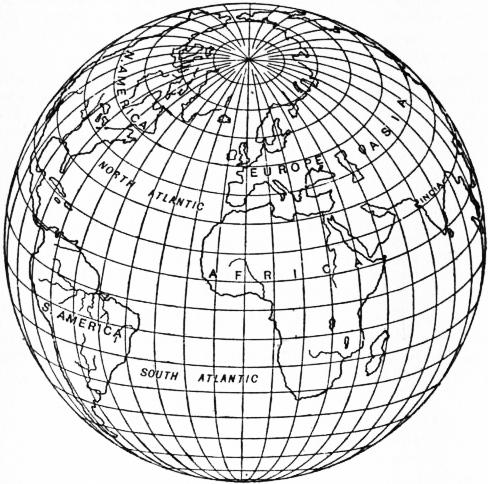 Measurement of Distance.—The shortest distance between two places on the surface of a globe is represented by the arc of a great circle. If the two places are upon the same meridian or upon the equator the exact distance separating them is to be found by reference to a table giving the lengths of arcs of a meridian and of the equator. In all other cases recourse must be had to a map, a globe or mathematical formula. Measurements made on a topographical map yield the most satisfactory results. Even a general map may be trusted, as long as we keep within ten degrees of its centre. In the case of more considerable distances, however, a globe of suitable size should be consulted, or—and this seems preferable—they should be calculated by the rules of spherical trigonometry. The problem then resolves itself in the solution of a spherical triangle.