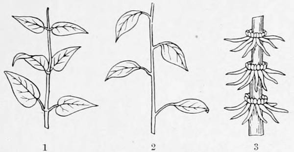 | Node. The junction of leaf and stem. | |
