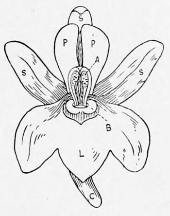| Labiate. Lipped. Applied to the calyx or the corolla of a flower when it is divided into two lips. | |
