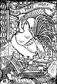 'The Miser and the Magpie.—As a miser sat at his desk counting over his heaps of gold, a magpie eloped from his cage, picked up a guinea, and hopped away with it. The miser, who never failed to count his money over a second time, immediately missed the piece, and rising up from his seat in the utmost consternation, observed the felon hiding it in a crevice of the floor. "And art thou," cried he, "that worst of thieves, who hast robbed me of my gold without the plea of necessity, and without regard to its proper use? But thy life shall atone for so preposterous a villainy." "Soft words, good master!" quoth the magpie. "Have I, then, injured you in any other sense than you defraud the public? And am I not using your money in the same manner you do yourself? If I must lose my life for hiding a single guinea, what do you,[110] I pray, deserve, who secrete so many thousands?"'